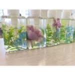 精油で香り付けをした後に、カラーを付けたり、ラメをいれたりしてオリジナルリキッドソープを作ります。